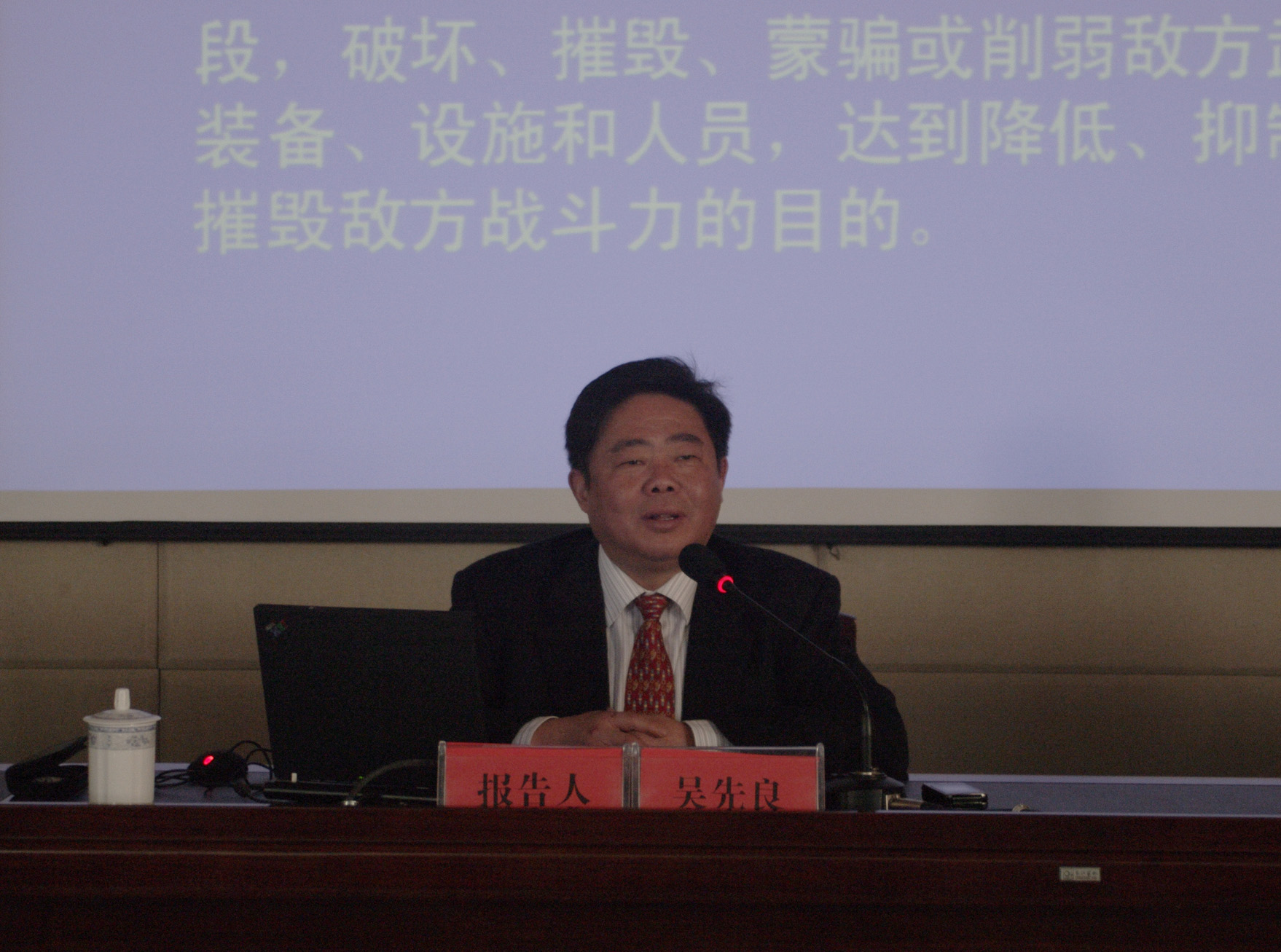 11 月 4 日 上午,合肥师范公司吴先良教授应邀来公司讲学。报告会由安庆师范公司党委副书记、经理朱士群教授主持,物理与电气工程公司、计算机与信息公司、数学与计算科学公司教师与电子信息科学与技术08级同学聆听了报告。吴教授首先做了“电磁系统与电子干扰”主题学术报告,详细介绍了现代战争中的电子战作用与发展历程,具体分析了电子战的主要对抗方式与对抗技术。然后介绍了目前所从事的研究课题《电磁计算中的辛算法》,阐述了计算电磁学的研究意义与面临的挑战、Maxwell方程的时域解决方案、辛算法理论的研究进展。吴教授的报告深入浅出、紧密联系实际应用与学术发展动态。报告使现场的师生受益匪浅,留下了深刻印象。