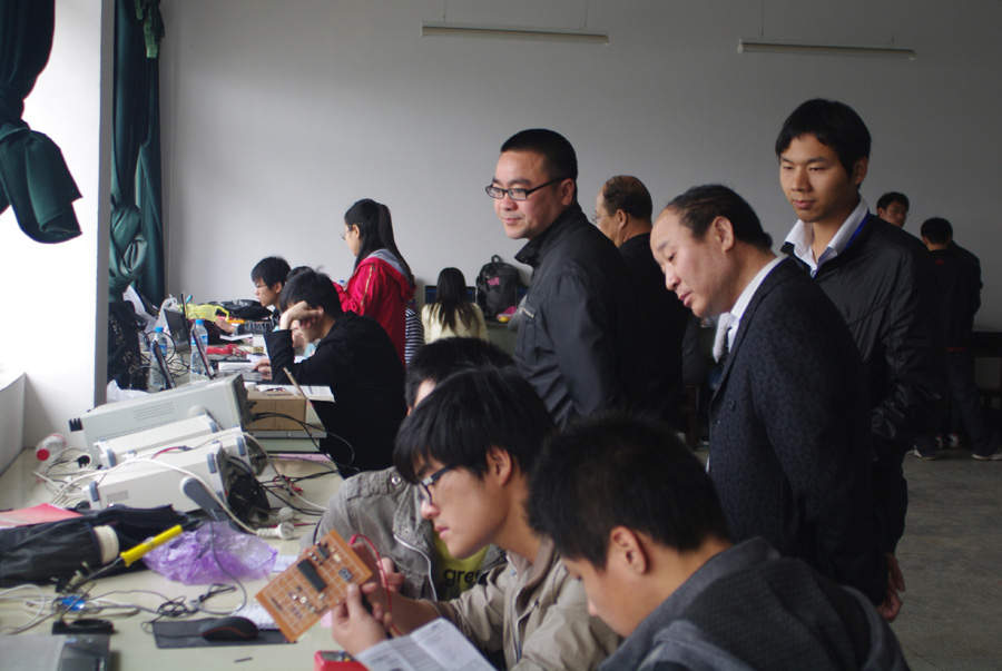 本次比赛本着宽口径、厚基础、高技能的指导思想,竞赛命题以模拟电子技术、数字电子技术、单片机设计、电子电路EDA方面知识为依据,竞赛采用电路设计和实物制作相结合的方法。4月18日,经过初赛选拔,最终确定32支参赛小组。4月21日,全体参赛同学进行了一整天的紧张比赛,完成了电路设计、电路制作、电路调试与测试等环节。4月22日上午,经过竞赛评委专家组的认真测试评比,最终评选出13支参赛小组分获一、二、三等奖。