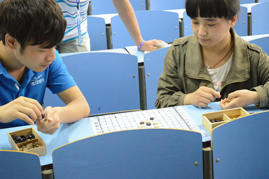 本次棋艺比赛由五子棋和象棋两部分组成,经过初赛的激烈比拼,共有38名参赛选手进入决赛。比赛采取淘汰制,三局两胜。五子棋赛场上,选手们一边下棋一边交流心得,让原本严肃的棋艺比赛变得热情四溢。经过2个小时的精彩比赛,2013级电信2班的杨松夺得五子棋冠军,而象棋冠军则被来自2013级机械1班的秦福星摘得。比赛的最后阶段,上一届棋艺大赛的五子棋冠军曾喜梅与本届的冠军杨松进行了一局友谊赛,为本次大赛画上了圆满句号。