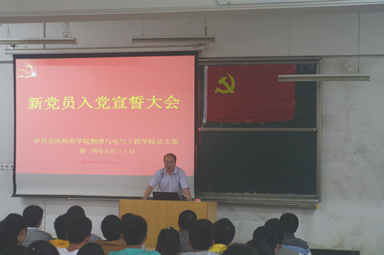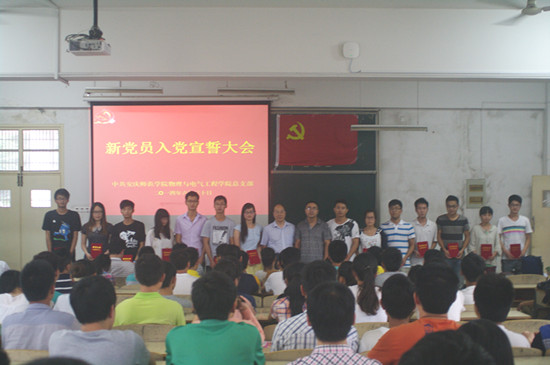 在中国共产党诞辰93周年来临之际, 6月30日下午,公司在稼先楼一楼多媒体教室隆重举行庆“七一”暨新党员入党宣誓大会。公司党总支书记吴昭方、副经理江巨浪、副经理江贵生、党总支副书记夏建华、教学科研办公室主任江善和,各员工党支部书记、全体员工党员参加了宣誓大会。大会由公司党总支副书记夏建华主持。