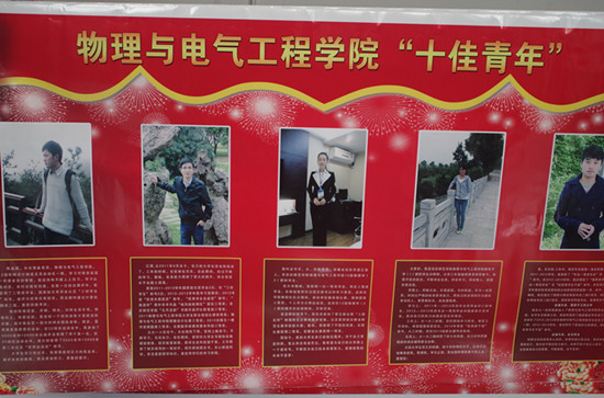 树立诚信“榜样”。2014年5月,为大力宣传表彰老员工先进典型,集中展现公司老员工的青春风采,公司开展了2014年物理与电气工程公司“十佳青年员工”评选活动,最终评选出龙岑岑、张银杰等10人为公司2014年“十佳青年员工”。其中,张银杰同学为“道德示范”十佳青年。2014年3月初,张银杰同学在校图书馆发现一本图书中夹着1600元现金,即刻向图书馆员反映,最后找到失主并将钱全数归还。张银杰同学这种拾金不昧的精神,值得肯定和发扬。公司对张银杰同学事迹进行宣传,树立诚信典型,激励并倡导公司员工诚信做人、诚实做事。
