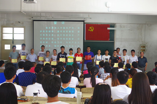 会上,2013级物理学(2)班的吴肖祥同学代表全体新党员作了表态发言。