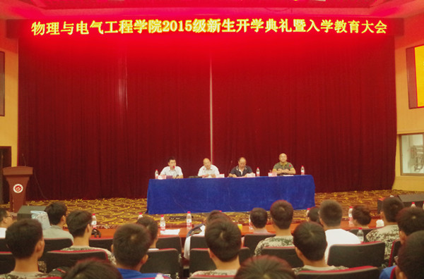 公司教师代表章礼华教授根据自己的求学经历,希望新生要抓住基础课程、学好专业课;员工工作办公室蒋立永老师宣读了《物理与电气工程公司2015级新生入学教育实施方案》;老生代表郭燕如分享了她大学的经历和感悟;朱媛龙同学代表新生做了表态和励志的发言。