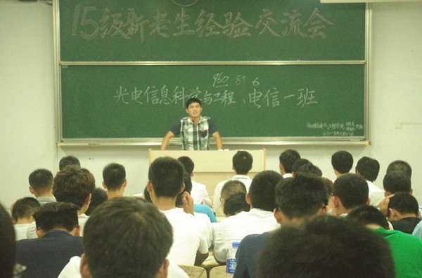 9月18日晚,由公司员工会学习部主办的2015级新老生经验交流会在文源楼成功举办。公司员工会主席团成员、2012级优秀员工代表、所有2015级新生辅导员助理出席了活动,共计四百余名大一新生参加了本次交流会。