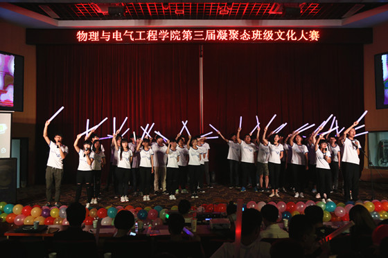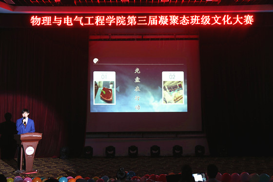 5月10日晚,公司第三届“凝聚态”班级文化大赛决赛在图书馆东厅圆满举办。本次比赛的主题为“青春校园,活力无限”。决赛共有三个环节:第一环节,班级风采,班级代表进行PPT演说。第二环节,独家秀场,表演班级特色节目。第三环节,全班同学共同唱响班歌。300余名观众到场观看了比赛。