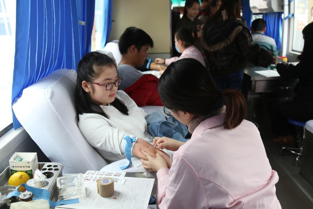 中午一点,同学们准时来到校园采血点,他们不论在身体还是心理上都做好了充分的准备。在志愿者的带领下,同学们有序地排起了长队,依次进行信息登记、血液类型检验、血液静脉采血等环节。等待献血期间,同学们紧张而兴奋,他们为自己的小小行动可能会挽救他人宝贵的生命而感到高兴。“在献血之前有一点害怕,但一想到能帮助濒危的病人,就鼓起勇气了”,参与献血的夏俐芬同学说。