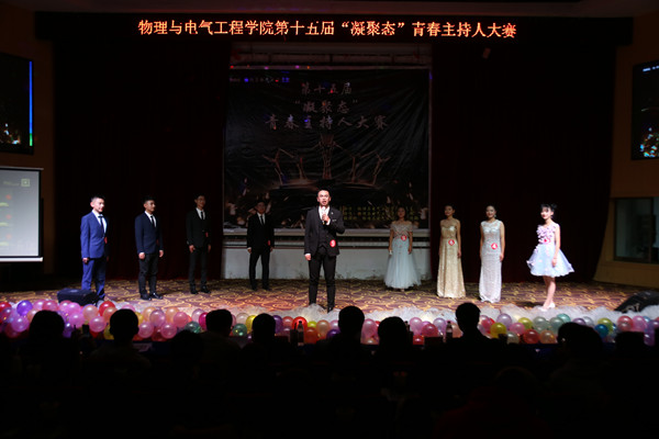 11月7日晚,公司第十五届“凝聚态”青春主持人大赛决赛在图书馆东报告厅拉开帷幕。此次主持人大赛经过初赛、复赛的层层选拔,最终角逐出九名选手进入决赛。本次比赛中,公司员工会指导老师徐辉老师、光电2018级辅导员潘盼博士、电信2018级辅导员陈秋生老师到场指导。校员工会副主席金石,员工社团联合会副主席方浩,校员工会文艺部部长胡珺楚,第十四届常春藤青春支持人大赛优秀选手徐繁柱,第十三届凝聚态青春主持人大赛冠军曹彦丘等同学担任本次比赛的评委。大赛分为自我介绍、模拟主持、才艺展示、即兴环节四个环节。