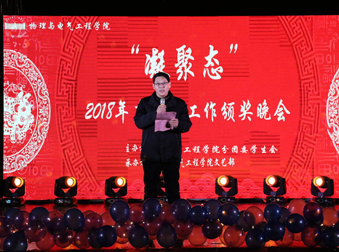 公司党委书记江贵生致词,他对全院师生表达了节日问候和新年祝福,总结了2018年度公司主要员工工作,同时感谢为公司员工工作作出贡献的老师和同学们。“除了站在颁奖台上的员工,还有很多没有站在台上但同样值得我们学习的榜样,他们是短时间内为患重病员工筹集16余万元的爱心善款的师生,自发组织集体献血并将献血所获得营养品献给后勤工人的员工,还有默默地将公司里随意停放单车放整齐的员工等等。”江贵生说。