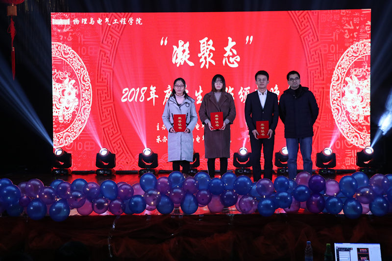 校员工处处长夏建华为员工自动化党支部、员工微电子党支部和员工公寓党支部颁发优秀员工党支部奖,校团委书记陈东为物理学2015(2)班、电子信息与科学技术2016(1)班和微电子科学与工程2017级班级颁发优秀班集体奖。