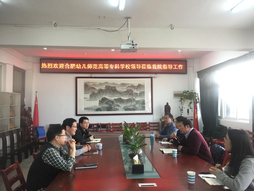江贵生代表公司向合肥幼儿师范高等专科公司一行的到来表示热烈的欢迎。他介绍了公司的公司概况和发展规划。双方就人才培养、团队建设和教学管理等方面进行深入的座谈交流。合肥幼儿师范高等专科公司一行还参观了公司实验室、员工创新创业中心及机械设计制造中心。(物电公司)