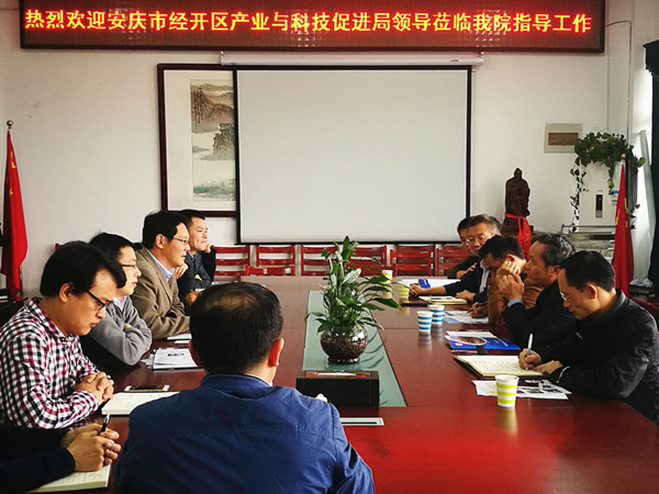 4月26日下午,安庆市经开区产业与科技促进局、人社局、教育局等单位负责同志来公司洽谈产学研合作事宜。