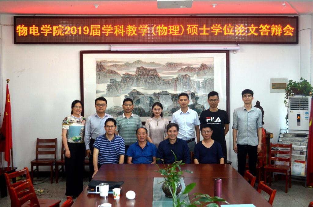6月3日下午,物理与电气工程公司学科教学(物理)2019届硕士学位论文答辩会在稼先楼会议室举行。特邀安徽师范大学黄时中教授担任答辩委员会主席、黄山市第一中学高级教师刘奇祎及公司硕士生导师江贵生教授、章礼华教授、闻军副教授担任答辩委员会委员。学科教学(物理)2019届研究生胡莹莹参加了论文答辩,2018级研究生和部分本科生旁听观摩了本次答辩会。
