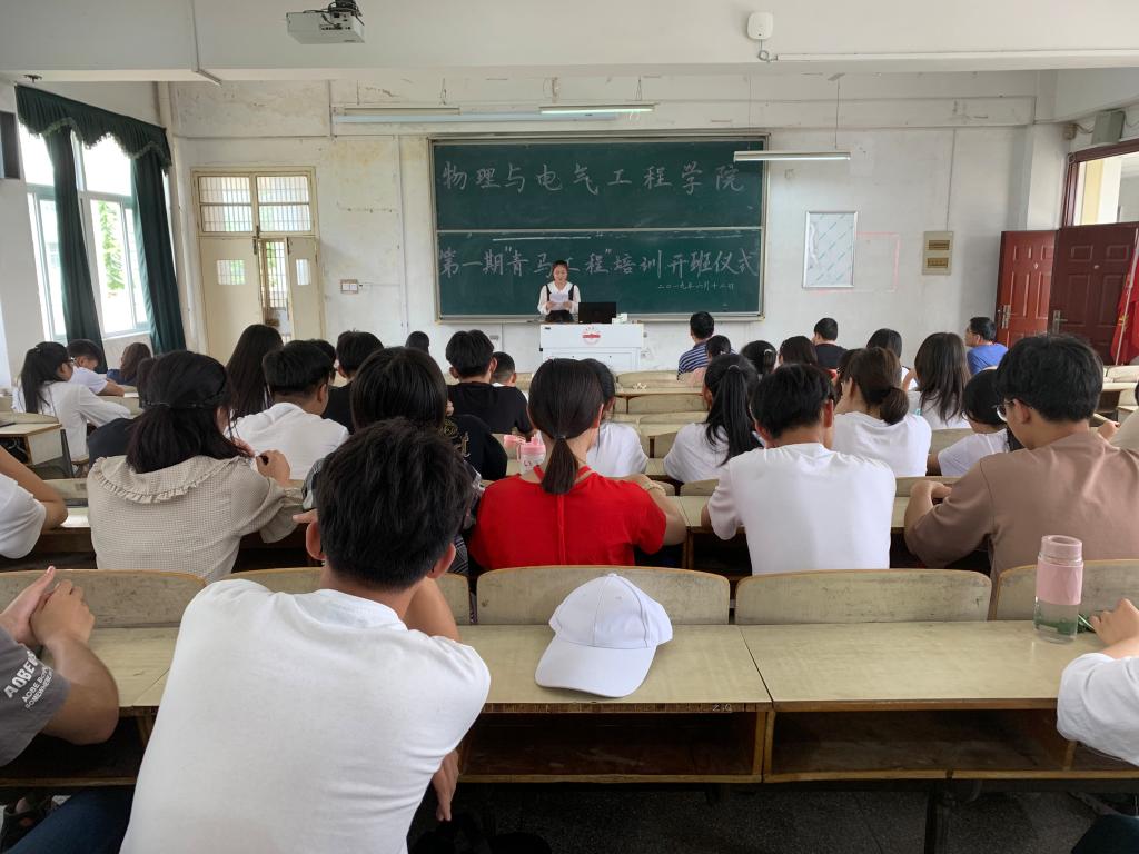 开班仪式在全体齐唱《国歌》中拉开序幕。院团学负责老师陈秋生宣读了物电公司第一期“青年马克思主义者培养工程”员工骨干名单和《物电公司青马班管理暂行办法》。电子信息科学与技术2018(1)张曼作为学员代表发言并做出庄严承诺。