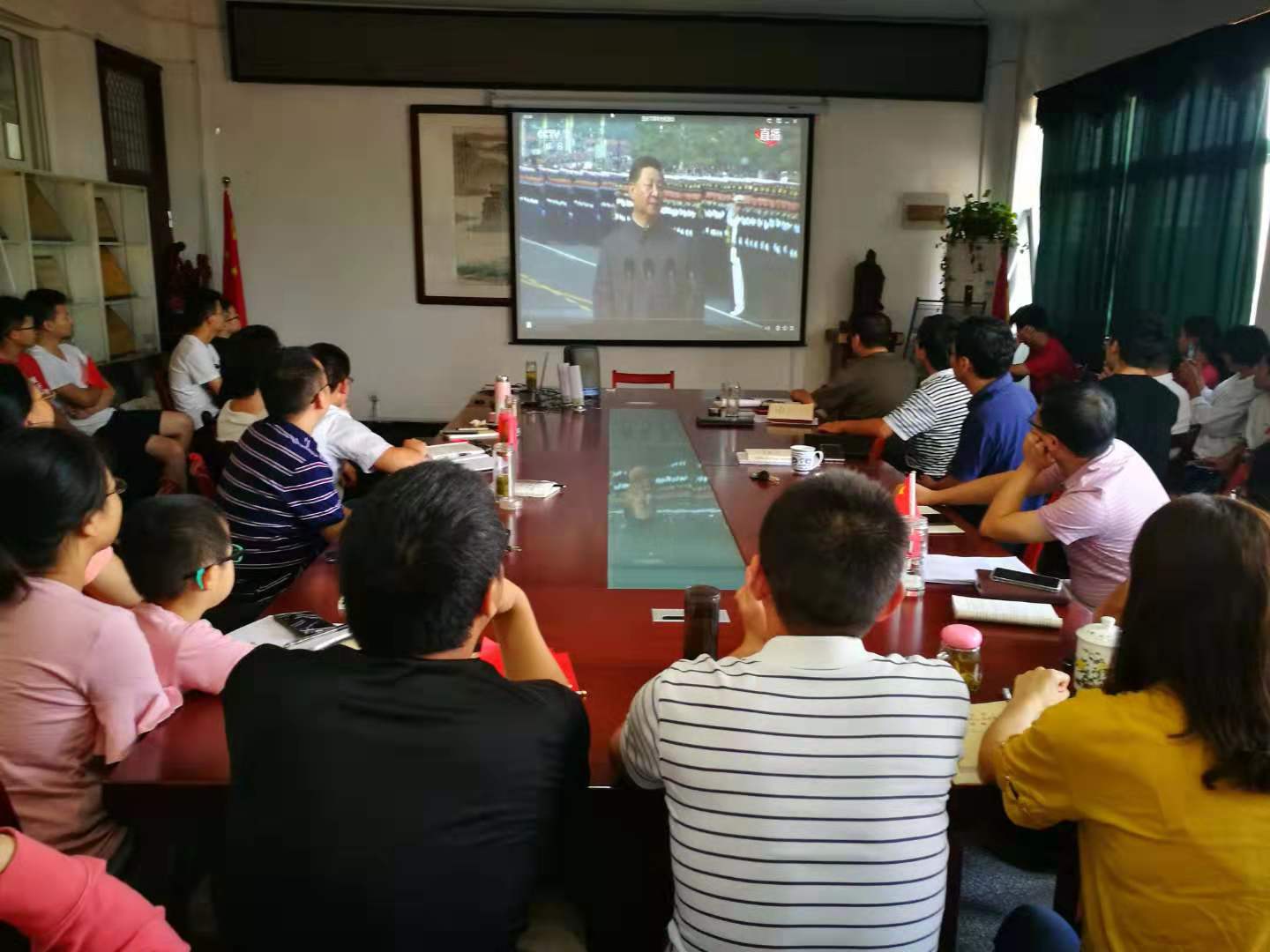 2019年10月1日,是新中国成立70华诞,上午,庆祝中华人民共和国成立70周年大会在京举行。中共中央总书记、国家主席、中央军委主席习近平出席大会并发表重要讲话。公司积极组织广大师生通过电视、广播、网络等方式集中收听收看大会盛况,热烈庆祝中华人民共和国成立70周年。公司全体党委委员、各支部书记、办公室负责人及员工代表一起在稼先楼北225大会议室集中观看盛典。
