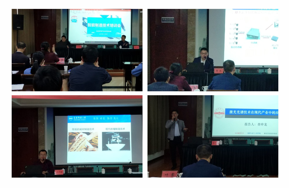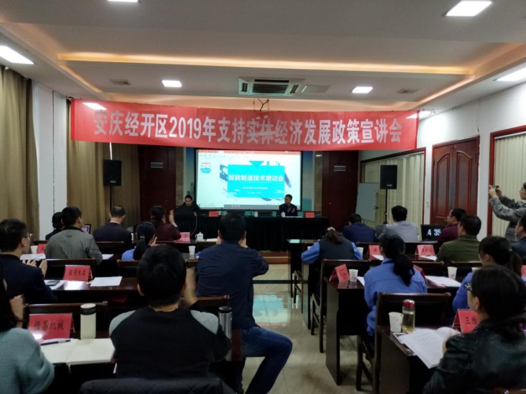受安庆经济技术开发区产业与科技促进局邀请,11月8日,智能制造产业研究院参加安庆市2019年度支持实体经济发展系列政策宣讲暨智能制造技术培训会。公司副经理董甲东教授带领相关专业博士教授团队,对参会的经开区企业做了智能制造技术培训,开展了产学研项目推介和调研活动。会议由经开区产业与科技促进局副局长陈仕方主持,园区70余家工业企业代表,经开区经发局、产促局以及媒体记者共80余人参加会议。