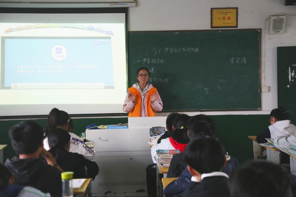 到达目的地,穿上工作服,分好组后,服务队的“小老师”们去到各自的责任教室进行自己的首次课堂教学实践,这次他们会教授初一的历史课和初二的物理课。精心准备的PPT、有趣好玩的教学视频、陌生的青春面孔吸引了讲台下孩子们的目光。