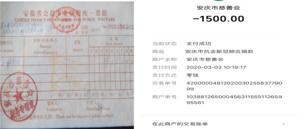 近日,为抗击新型冠状病毒感染肺炎疫情,公司2019级电子信息科学技术(2)班通过网络在线的方式在班级范围内发起了抗“疫”募捐活动,仅仅3小时就募捐到爱心款1500元,用于助力安庆当地的疫情防控。