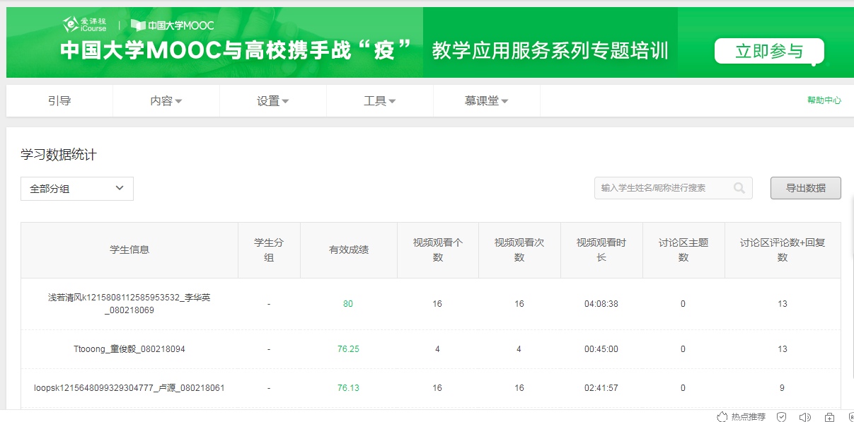 三、课后再加“辅料”,让员工学习持续起来。“温故而知新”,课后的持续学习是吸收知识的重要保证。为了督促员工做好复习工作,胡老师及时统计线上管理后台的数据,对出勤异常的员工及时在课程QQ群里提醒,并要求相关员工给予回应解释,这种“出汗红脸式”的传统教育有效杜绝了部分同学对线上教学的错误认识。在实现空中直播的同时,胡老师还要求员工学习中国大学MOOC平台中的国家级优秀课程视频,并在现有MOOC平台中添加了部分测试题。每个章节授课后,胡老师均布置课后作业,要求员工在练习本上完成。课后是员工容易放飞自我的时间,只有在细节处多找些“辅料”,才能确保员工学习不松懈。