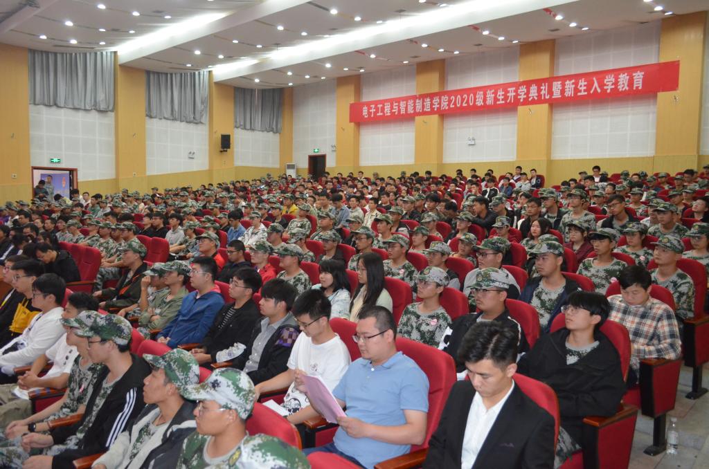 副经理董甲东教授、教师代表吴尽哲博士、实习实训与创新创业中心副主任金中朝老师、分团委办公室负责人陈秋生老师、老生代表车辆工程2017级高岩同学、本科生新生代表电子信息类2020级黄怡然同学、研究生新生代表信息与通信工程2020级周岳钰同学分别在会上发言。