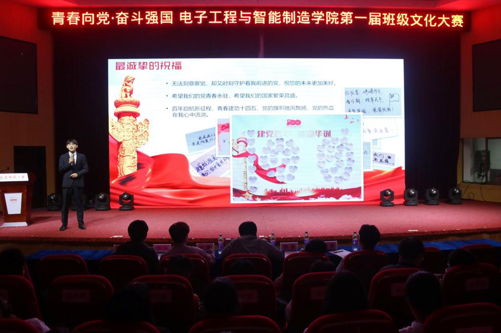 电子信息类专业2020(3)班选择诗歌朗诵来表达对党的真挚祝福。“翻开历史的一页 ,1921年四万万人齐下泪,天涯何处是神州?在中国于黑暗中苦苦奋争的时刻,你悄然诞生……”一字一句声声入耳,牵动人心。“这首诗歌说出了中国屈辱的过去、奋起的如今和腾越的未来,每一次诵读时都会被中国共产党的百年艰辛历程所深深打动。”该班学习委员张澍葳感慨到。