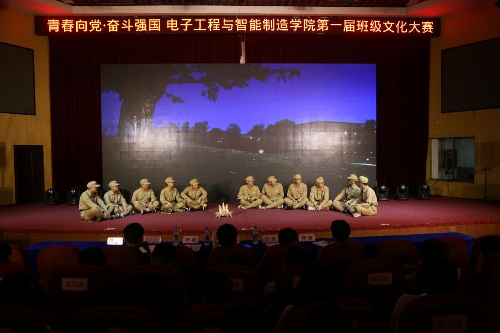 “中央红军第五次反‘围剿’的失败和长征初期红军力量遭受的严重损失,引起了广大干部和战士对王明军事路线的怀疑和不满,纷纷要求改换错误的领导……”旁白声起,舞台灯亮,另一舞台剧《遵义会议》在电子信息类专业2020(2)班的鲜活演绎下,重现了党历史上生死攸关转折点的伟大一幕。