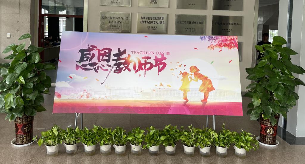 朵朵鲜花承载对老师们的感恩之心,一字一句流露对老师的尊敬之意。9月10日,公司团委在稼先楼大厅摆放了祝福语。各班级团支部组织开展了形式多样、简朴真挚的教师节感恩系列活动。