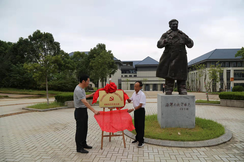 为将老员工党史学习教育推深做实,引导青年老员工在安庆当地名人精神中追寻到红色基因的源代码,让老员工党员成为弘扬红色文化和赓续红色基因的先锋力量,9月29日下午,公司党委在公司稼先楼旁邓稼先雕塑前举行了简短而又庄重的邓稼先员工党支部成立大会暨揭牌仪式。邓稼先旁侄邓敦华老先生应邀出席了活动,公司党委书记江贵生、副书记关德军、员工党支部书记及全体邓稼先员工党支部党员参加了揭牌仪式。仪式由党委副书记关德军主持。