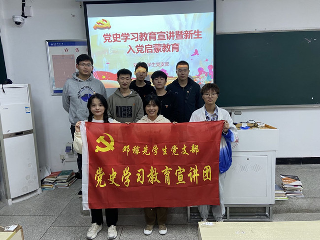 10名党史学习教育宣讲团成员利用晚自习时间深入到新生班级开展党史宣讲和入党启蒙教育。活动分为二个部分:第一部分,宣讲“两弹元勋”邓稼先的生平事迹。结合微视频故事播放,宣讲团将邓稼先的爱国精神、科学精神和奉献精神诠释得淋漓尽致。“邓稼先1948年到美国普渡大学留学,只用了一年零九个月的时间就获得博士学位,获得博士学位以后的第九天,他就踏上了回国的旅程。他为什么回来?新中国成立了,他要回来建设新中国。过去无数像邓稼先的仁人志士为实现国家富强和民族复兴奉献出了自己的一切。今天我们要接好时代发展的‘接力棒’,继承先辈的红色基因,立志成才,为实现中华民族的伟大复兴而努力奋斗……”,宣讲团成员吴晓琪进行着激昂地宣讲。邓稼先的先进事迹使在场的新生备受感动和鼓舞,纷纷表示一定要继承邓稼先精神,立足专业,勇于创新,勤奋实践,练好本领,用科技知识报效祖国。第二部分,宣讲团成员开展新生入党启蒙教育,介绍中国共产党的基本知识,详细讲解入党的标准、条件及基本程序,强调端正入党动机的重要性,并结合自身的入党经历鼓励同学们坚定理想信念,刻苦努力学习,时刻以党员的标准来严格要求自己,用实际行动践行党的宗旨,积极向党组织靠拢。“通过这一次的入党启蒙教育,我充分了解到了党员的基本条件是什么,入党有哪些基本程序和流程,如何撰写党员发展的相关材料,等等。我今后一定要加强政治学习,不断地充实提升自己,积极地向党组织靠拢,不仅在组织上入党,更要在思想上入党。”2021级电子信息大类5班马梦娇同学说道。