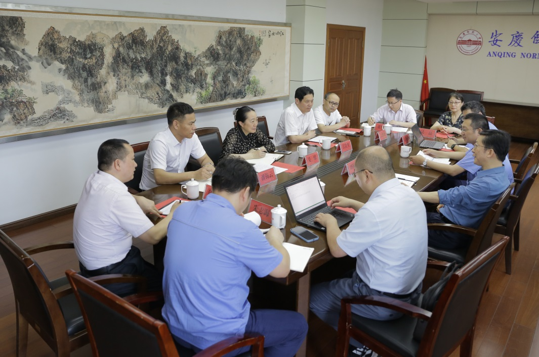 6月6日 ,安徽环新集团股份有限公司副总经理、高级工程师刘铜庆一行来公司商谈校企合作事项。公司党委常委、副董事长吴琼会见刘铜庆一行并出席座谈会。