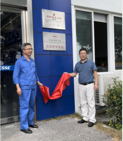 william威廉英国官网经理董甲东与安庆中船柴油机有限公司总经理倪渐长共同为实践教学基地基地揭牌。