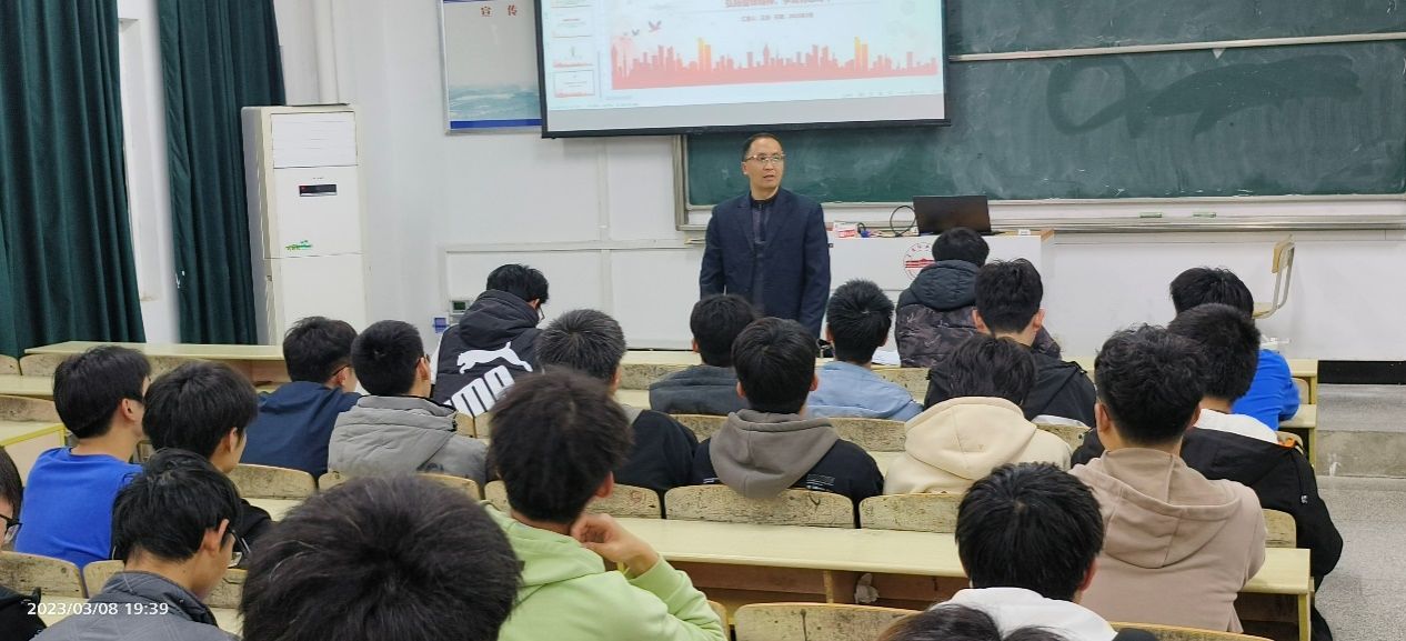 班级辅导员高栋梁老师参加活动并作了总结讲话。他对本次主题班会的前期准备、组织形式、过程设计和现场效果给予充分肯定。希望全体同学要立足本职岗位,以党的二十大精神为指引,努力夯实专业基础,积极参与实践活动,努力提升为人民服务的本领。在平时学习和生活中,要学习和弘扬雷锋精神,干一行,爱一行,专一行,精一行,以青春之名,担时代之责。