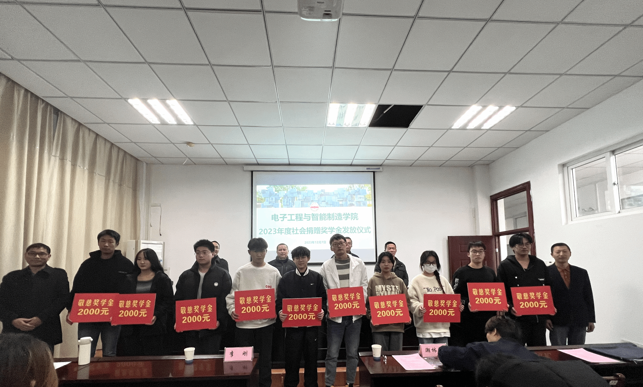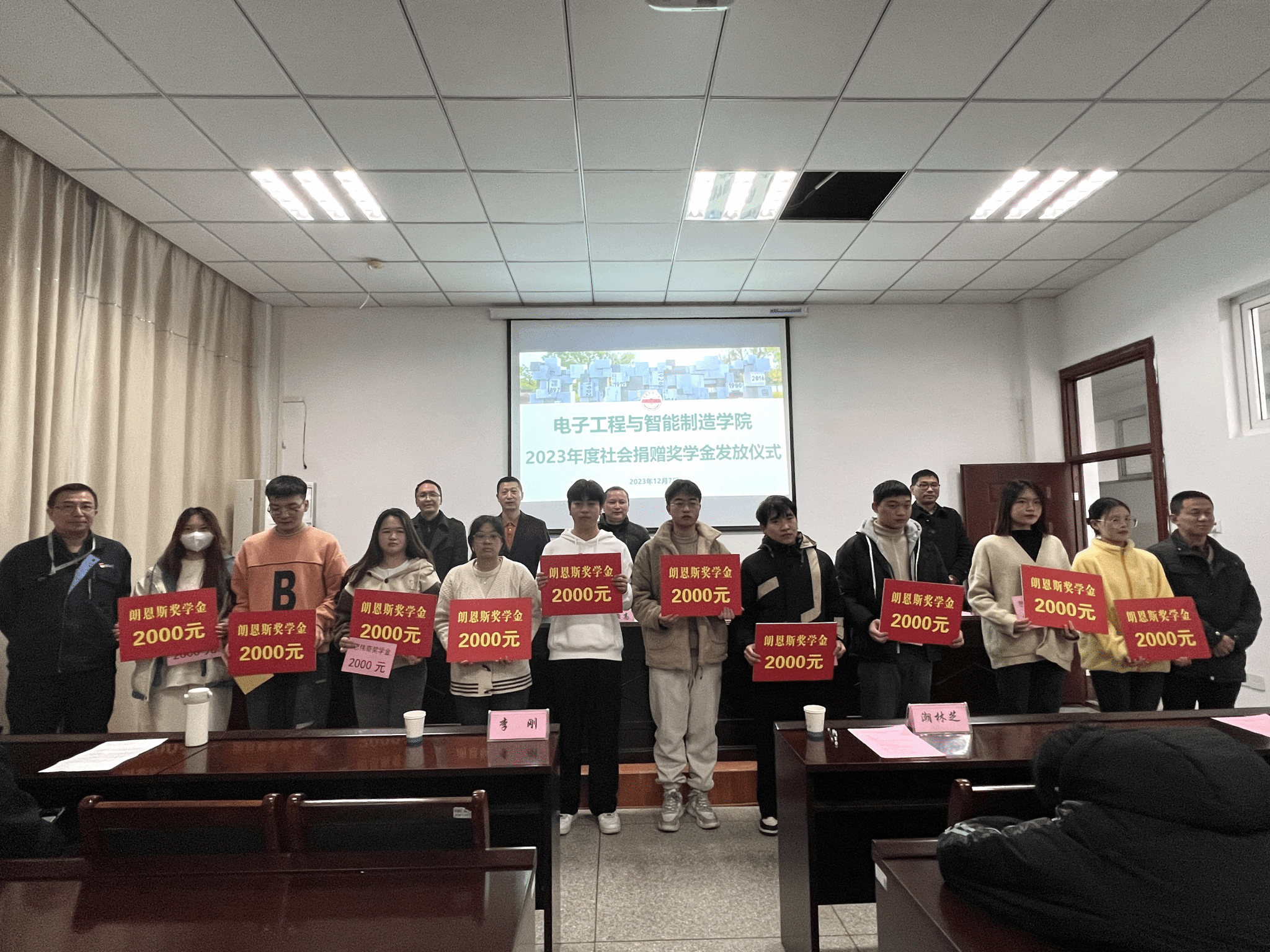 12月7日,公司在稼先楼南104会议室举行公司2023年度社会捐赠奖学金发放仪式。江苏朗恩斯集团安庆思伟奇智能科技有限公司副总李宣,行政主管李刚、人事主管潮林芝,员工总会办公室副主任方申荣,公司领导班子成员出席仪式。班级辅导员老师、各班级员工代表以及2023年度社会捐赠奖学金获奖员工参加仪式。仪式由公司党委副书记高栋梁主持。
