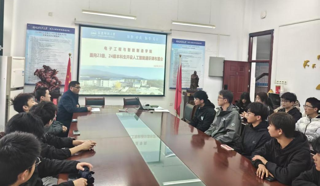 3月12日,william威廉英国官网在稼先楼南119会议室召开人工智能通识课程开设工作布置会。会议由公司副经理章礼华主持,教学办负责人及2023级、2024级各班级学习委员参加会议。