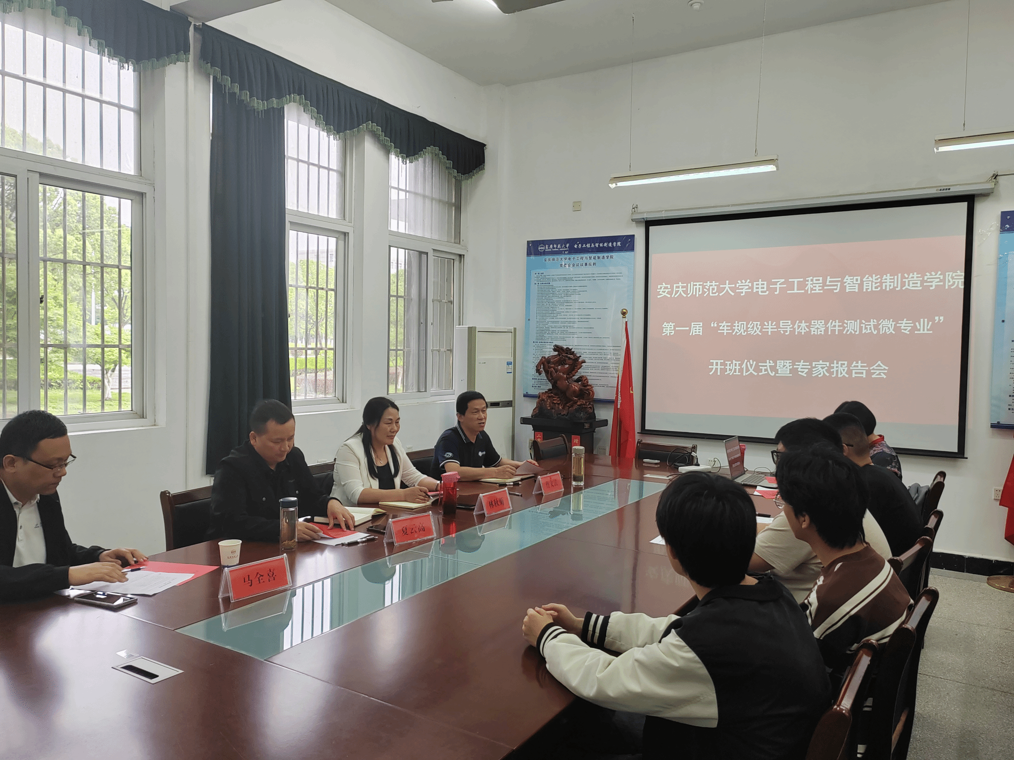近日,公司举行车规级半导体器件测试微专业第一期开班仪式。公司教务处副处长林秋菊,公司党委书记夏云高,池州华宇电子科技股份有限公司测试经理马全喜出席,开班仪式由副经理詹文法主持,教师代表及微专业全体同学参加了开班仪式。