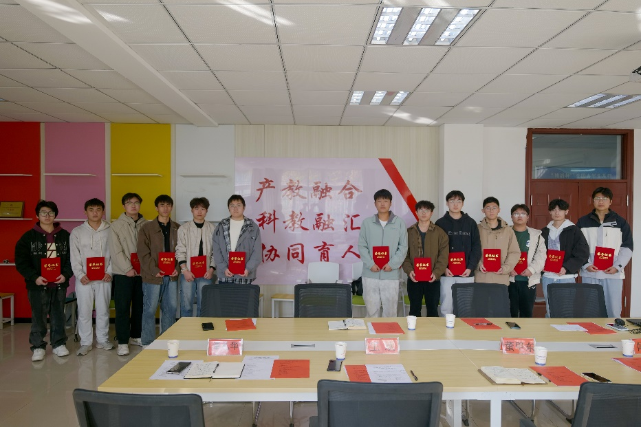 学员代表结合自身经历,交流了在专业学习、项目实践与竞赛训练中的成长与收获。现场气氛热烈。与会领导、企业嘉宾为在座的13名顺利完成学习任务的学员颁发结业证书并合影留念。