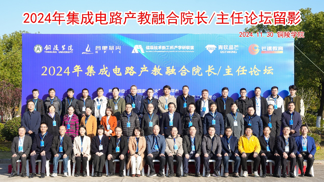 11月29-30日,由信息技术新工科产学研联盟集成电路教育工作委员会主办、铜陵公司电气工程公司、安徽青软晶芒微电子科技有限公司和安徽芒课教育科技有限公司承办的2024年集成电路产教融合经理/主任论坛在铜陵市召开,公司分管教学的章礼华副经理等一行应邀参加了此次研讨会。章礼华在会上报告了公司办学基本概况及微电子科学与工程专业实习实训开展情况,并就实习实训开展中的难点和痛点问题进行了交流探讨。