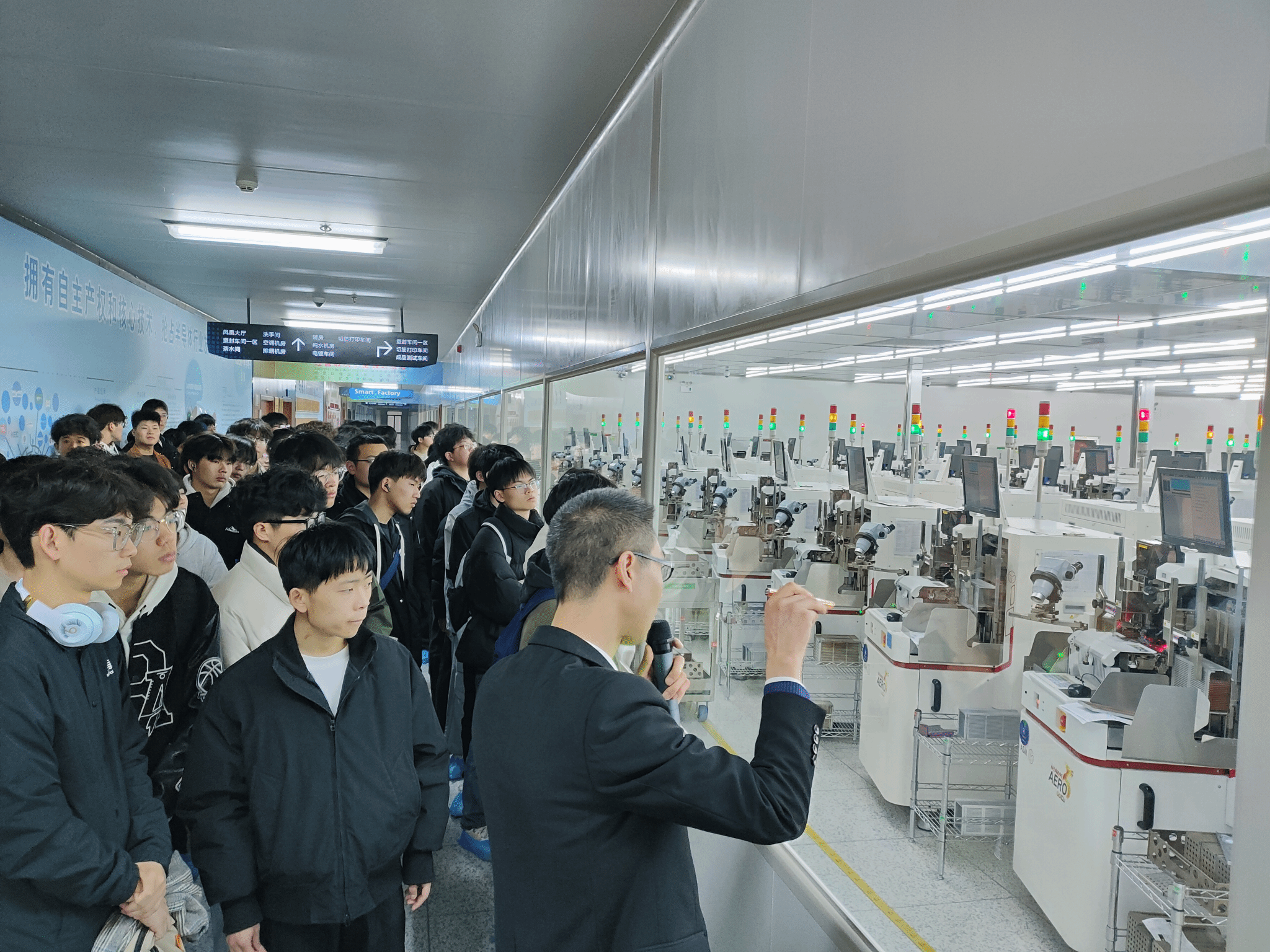 3月12日,公司2023级微电子科学与工程专业100余名同学赴池州华宇电子科技股份有限公司开展见习活动。华宇电子人力资源部经理薛东红带领同学们深入生产车间,实地参观了集成电路封装与测试全流程产线。
