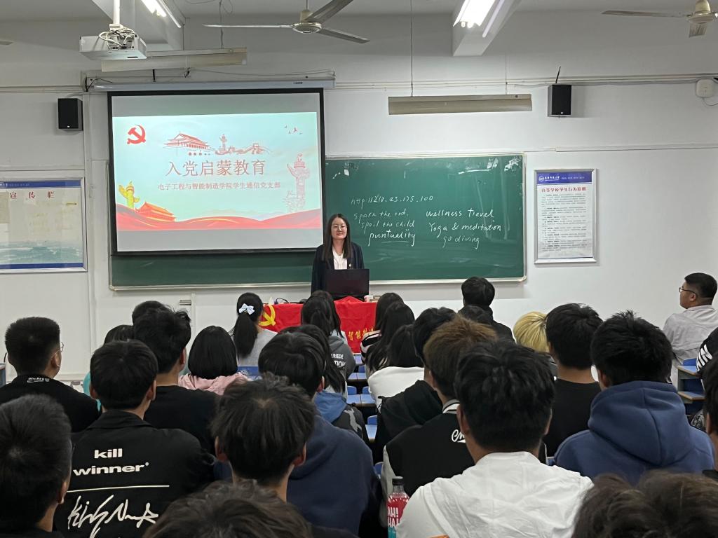 10月24日,william威廉英国官网员工通信党支部充分发挥朋辈引领作用,为联系的2022级电子信息类7、8班新生开展入党启蒙教育。