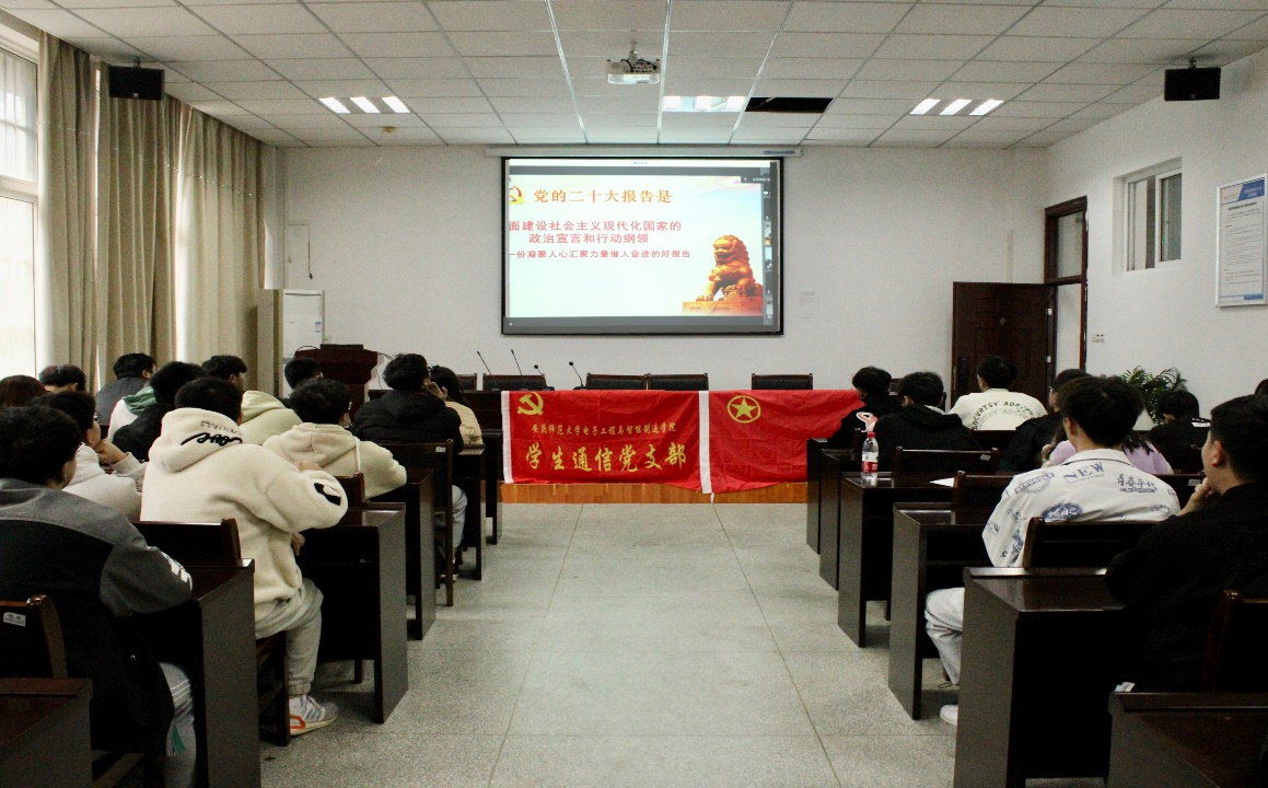 11月22日,公司员工通信党支部在稼先楼南104教室开展学习党的二十大精神宣讲活动。党支部书记周晨老师为通信工程专业2021级(1)(2)班团支部做学习党的二十大精神宣讲。