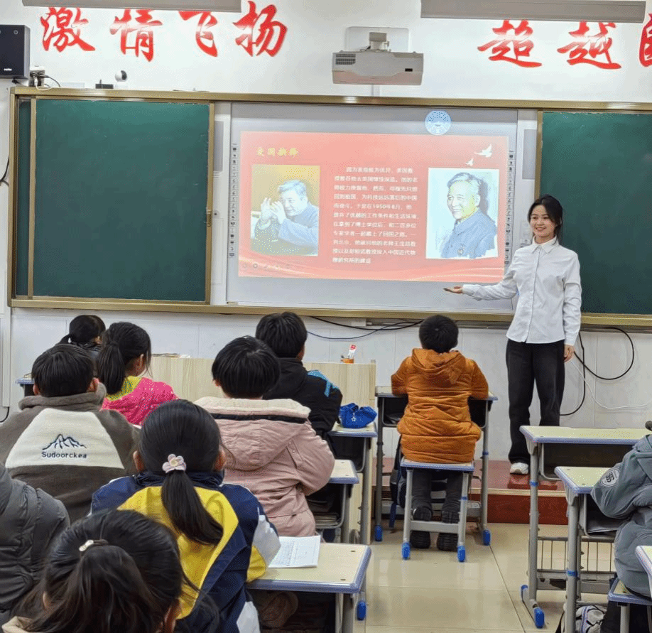 “同学们来猜一猜,两弹元勋邓稼先做出了如此伟大的功绩,国家给了他多少奖金呢?”电子信息类专业2022(3)班的贾翰迪在讲台上化身“小老师”,向家乡小学的员工们提问。“一万!”“不对,不对,是十万!”……员工们纷纷举手抢答。“原子弹奖励了十元,氢弹奖励了十元。”当贾翰迪说出答案时,员工们纷纷表示难以置信。“邓稼先先生对祖国的深沉热爱以及他无私奉献的精神,在我心中留下了深刻的印象。”其中一名员工表示,通过这场宣讲,他更加坚定了报效祖国的决心。