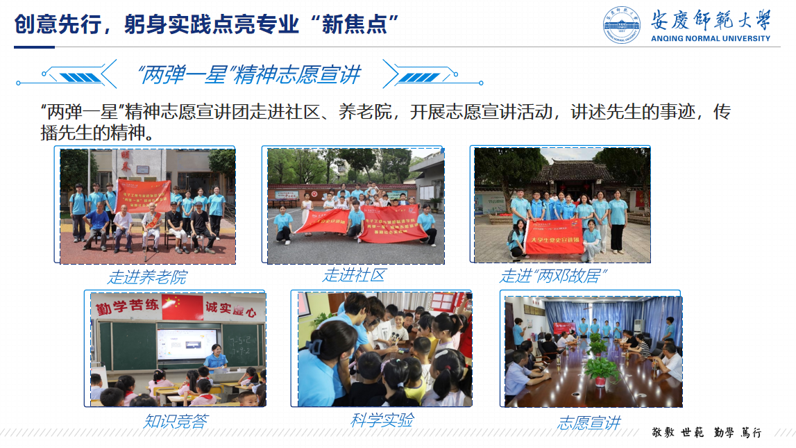 做人做事,立德为先。用真诚的态度做人,用真诚的行动做事。党团活动中,班级同学们虚心自省,积极完善自己,向党组织靠拢,目前班级预备党员2人,入党积极分子10人;在寒暑期社会实践中,他们深入大街小巷,调研民生热点,班级组建22支暑期社会实践团队,其中3支为校级重点团队。为了弘扬“两弹一星”精神,班级同学组建“两弹一星”志愿宣讲团,他们深入社区、公司、企业进行宣讲,宣讲场次60次,覆盖人数达3000人。