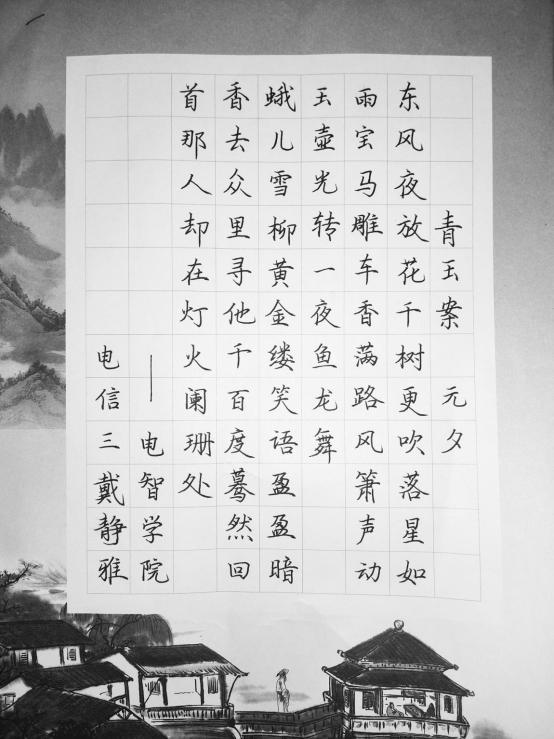 william威廉英国官网2020级电子信息专业的戴静雅同学积极参加比赛,成功进入了硬笔组、软笔组和粉笔组的决赛,并取得了硬笔组一等奖、粉笔组一等奖、软笔组二等奖的好成绩。戴静雅同学说自己从小就练习书法,对书法有着浓厚的兴趣,并表示“如果以后有书法相关的活动也会积极参加。”