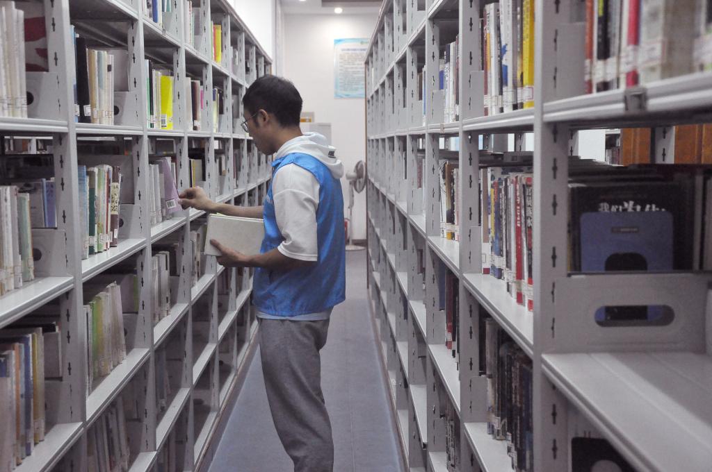 读者们埋头安静读书学习的同时,电子商务专业2019(2)班的黄飞虎正认真核对图书位置并将其整齐归位。他表示自己大一时就加入了这只队伍并参与该活动多次,不仅能帮助别人,他自己更是收获了满满“干货”。“我们志愿者在休息的时候也可以翻阅书籍,这边的学习氛围很浓郁,而且图书管理员会和我们分享很多经验和趣事。”黄飞虎坦言。