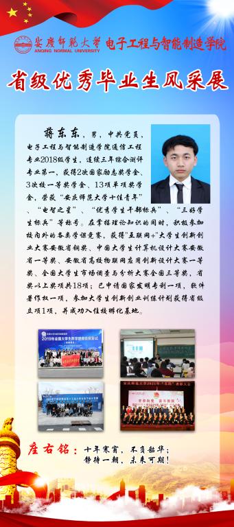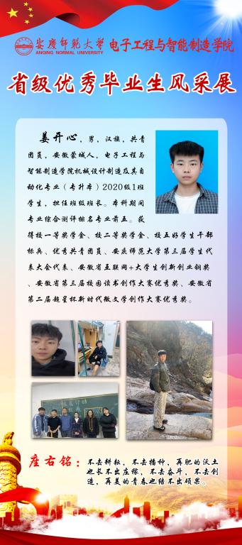感受优秀的魅力,感知榜样的力量。又到一年毕业季,又一批电智学子即将站在新的起点,踏上新的征程。他们当中有17名同学获得省级优秀毕业生称号,勤奋好学、乐观向上、积极进取是他们共同的特点。为引导全体员工践行榜样精神,学知识、长才干,求进步,公司学团特推出“省级优秀毕业生风采展”系列,学习宝贵经验,开拓进取,不断前行。(撰稿:陈秋生 审核:关德军)