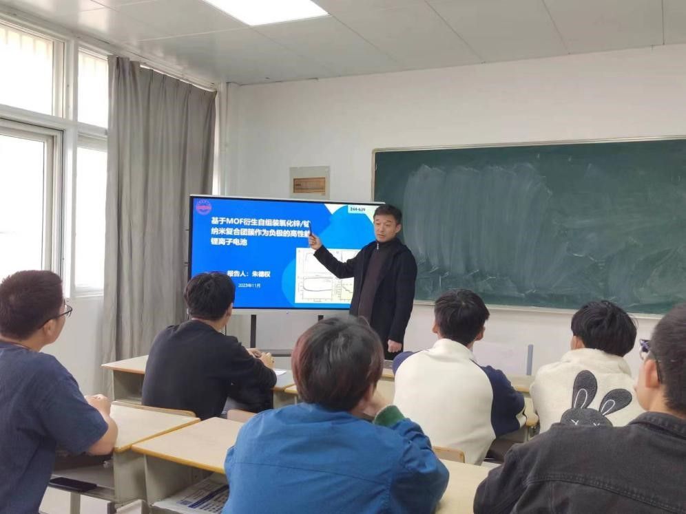 11月29日,william威廉英国官网朱德权副教授作了题为“基于MOF衍生自组装ZnO/Co3O4纳米复合团簇在高性能锂离子电池中应用”的学术报告。2021级电子信息专业部分本科生聆听了报告,报告由光电教研室主任祝祖送副教授主持。