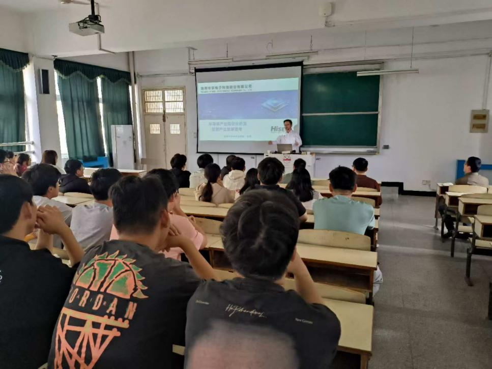 10月12日,池州华宇电子科技股份有限公司董事长彭勇为公司师生做《半导体产业分析及封测产业发展思考》的专题讲座,重点围绕半导体产业现状及面临的机遇、挑战等几个方面展开介绍。讲座由副经理詹文法主持,公司部分教师、2022级微电子科学与工程专业员工参加了本次讲座。