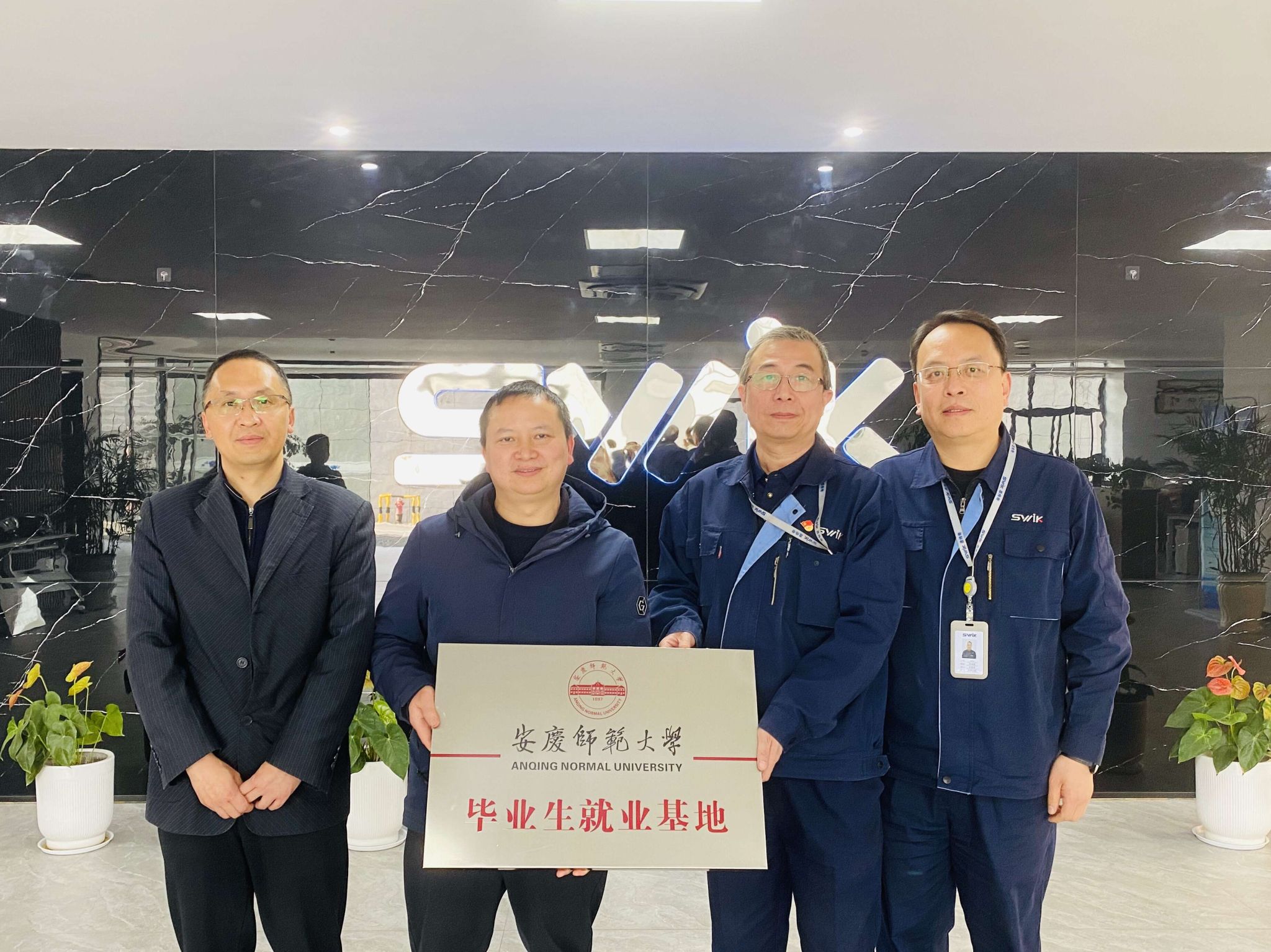 在安徽思伟奇智能科技有限公司,双方介绍了前期合作的相关情况,就员工实习实践、毕业生就业、项目合作等方面进行了深入交流并举行了毕业生就业基地签约和授牌仪式。