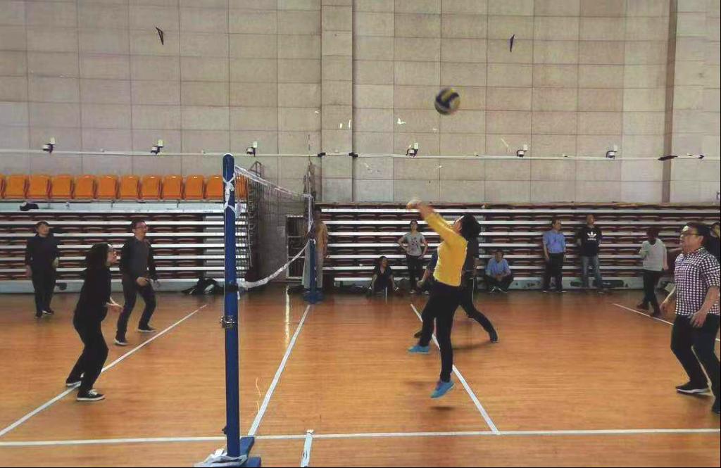 热情划长空,排球凌空跃!为丰富广大教职工的业余生活,11月18下午,公司工会在体育馆举办了全院的教职工气排球比赛。 比赛在欢快热烈的气氛中进行。随着一声哨声,电子系、机电系、通信系和行政队四支代表队的队员便开始了龙争虎斗,他们以娴熟的技术、默契的配合、凌厉的攻势,打造出一个个美妙的瞬间。