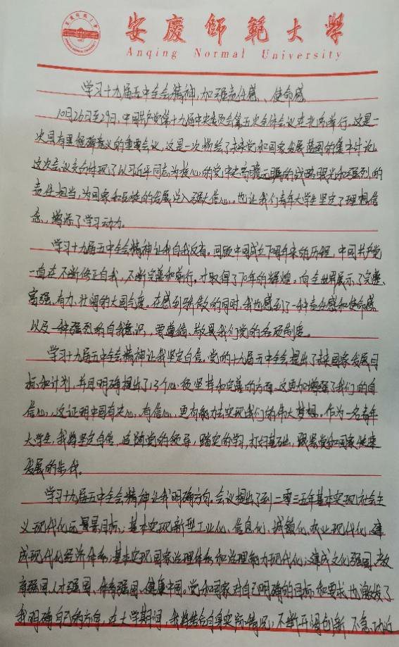 光电2019级聂雨婷表示:作为一名团支书,我们更是使命在肩上,责任重大。必须深刻认识和把握全会的重大意义,坚决把党的十九届五中全会精神贯彻落实到实际学习、工作中去,以更高的标准、更严的纪律,立足本职、忘我工作,进一步强化责任担当
