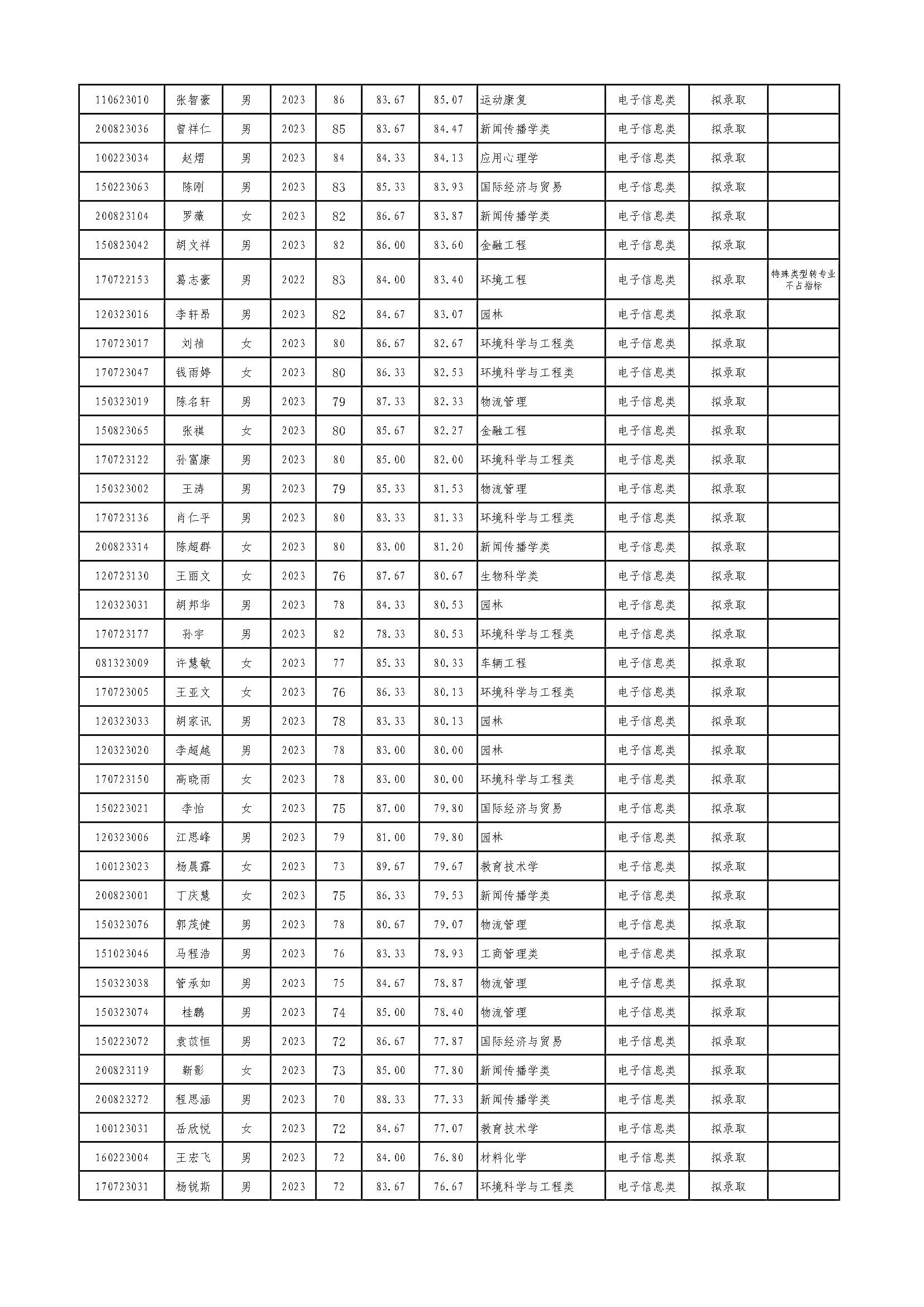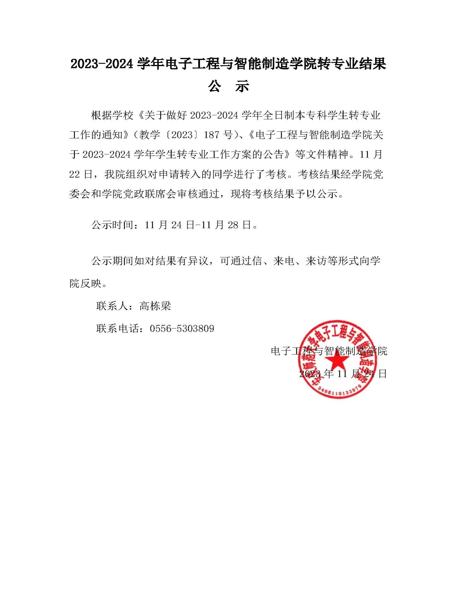 2023-2024学年本科转专业william威廉英国官网申请转入员工考核结果公示
